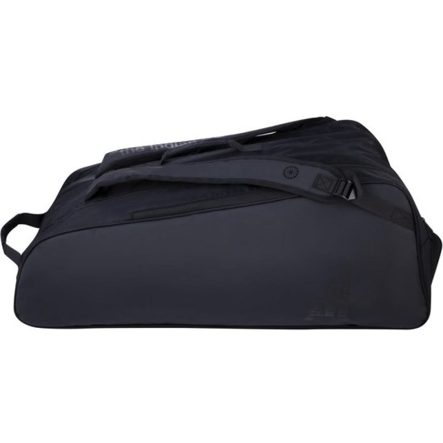 The Indian Maharadja Tennis Backpack TCMR 8 is een ruime en professioneel uitgevoerde tennistas, ontwikkeld voor fanatieke tennissers. De tas is gemaakt van hoogwaardig 900D polyester in combinatie met slijtvast en waterafstotend tarpaulin, waardoor hij geschikt is voor intensief gebruik. Met een inhoud van circa 46 liter biedt de TCMR 8 ruimte voor 8 tot 9 rackets en al je overige tennisuitrusting. De tas heeft twee aparte hoofdcompartimenten, waarvan één is voorzien van isothermisch materiaal om je rackets te beschermen tegen hitte en kou. Beide compartimenten zijn uitgerust met stevige dubbele ritsen. Daarnaast beschikt de tas over een apart schoenenvak en twee ruime zijvakken voor accessoires, waardevolle spullen of andere benodigdheden. De TCMR 8 kan worden gedragen met de twee handvatten of als rugzak, dankzij de verstelbare en gewatteerde schouderbanden. Dit zorgt voor comfortabel en ergonomisch dragen, of je nu naar de baan fietst of een toernooi bezoekt. The Indian Maharadja Tennis Backpack TCMR 8 is een functionele, ruime en duurzame tennistas voor spelers die veel meenemen en geen concessies willen doen aan kwaliteit.